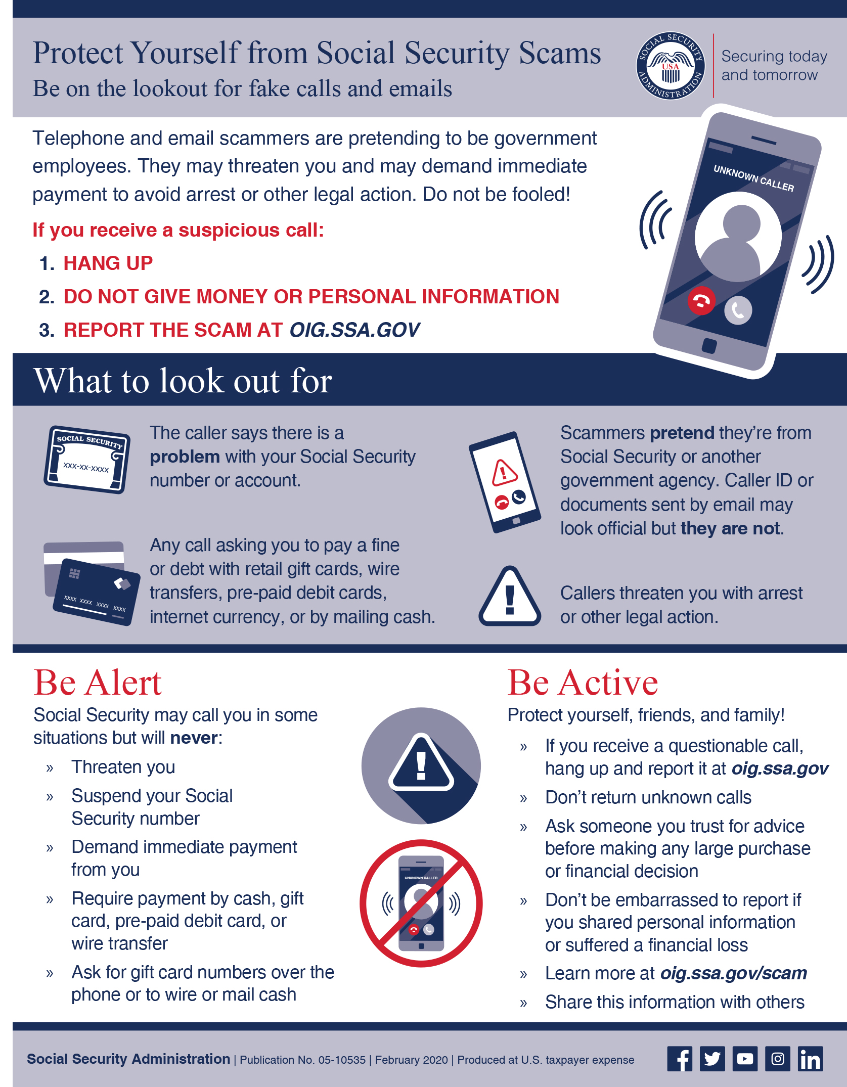 - Social Security Scams - Be on the lookout for fake calls and emails